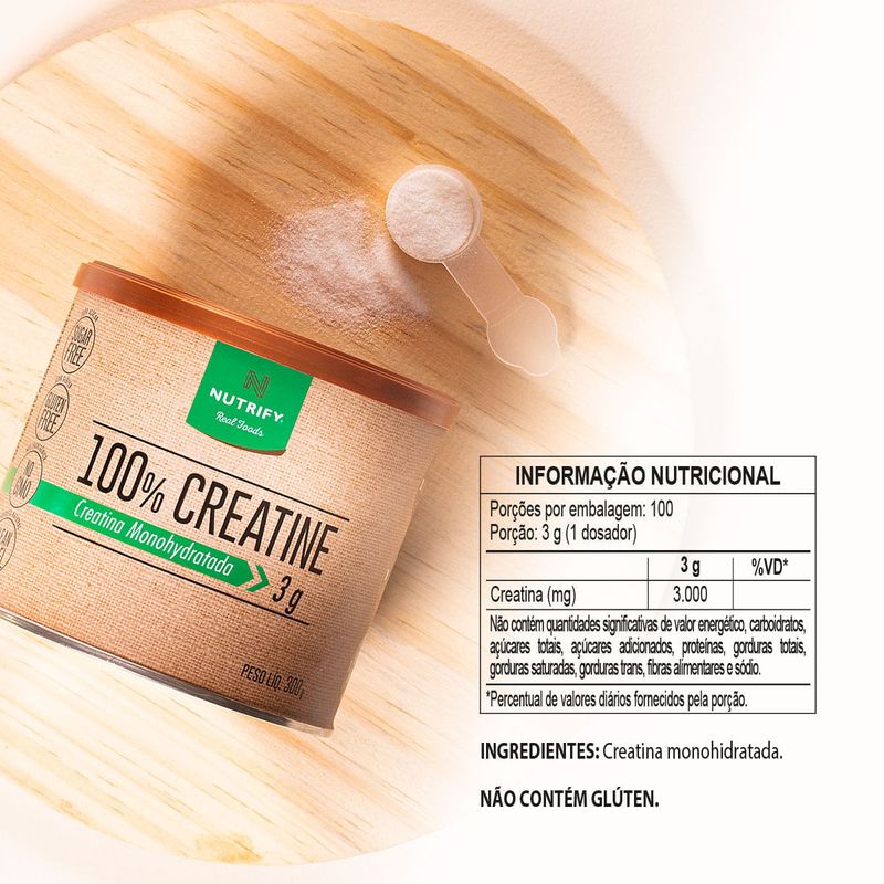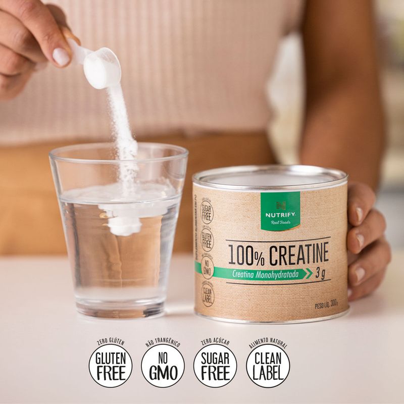100% Creatine Nutrify é um suplemento de creatina monohidratada 100% pura, sem aditivos artificiais, açúcar ou glúten.
