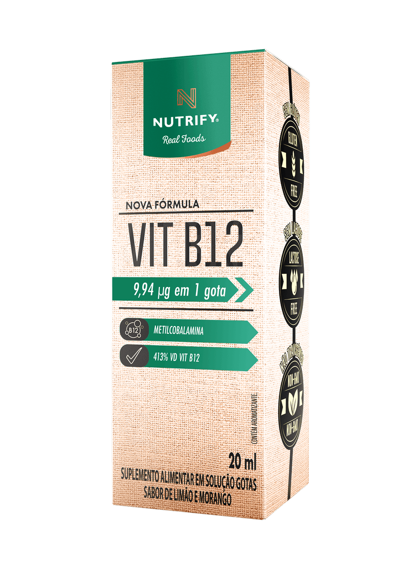 A Vit B12 Nutrify é um suplemento livre de aditivos artificiais, formulado com a forma natural desse nutriente, a metilcobalamina em gotas, oferecendo um fonte pura e confiável de B12 para seu dia a dia.
